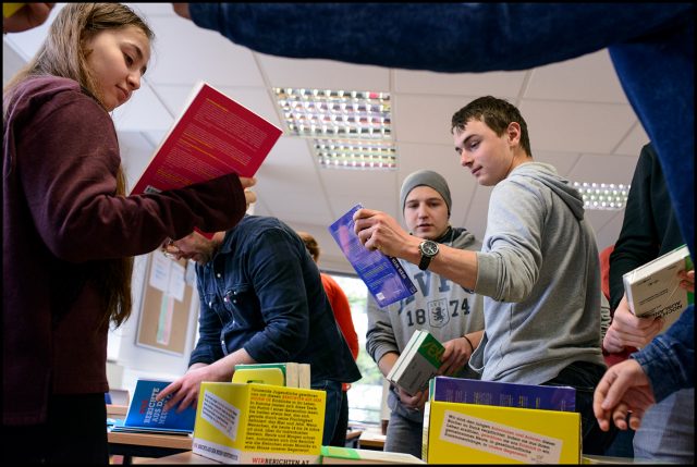 Eingeleitet werden die Workshops mit dem Angebot eines Tauschgeschäfts: Jede Autorin, jeder Autor bekommt ein Buch mit 240 Geschichten von Menschen, die Grenzen überschritten haben und davon in der Ich-Form berichten (IMPORT/EXPORT: Lauter Ausländer/Noch mehr Ausländer). Im Gegenzug geben die Jugendlichen ihre Hefte ab und die Geschichten damit zur Publikation frei.