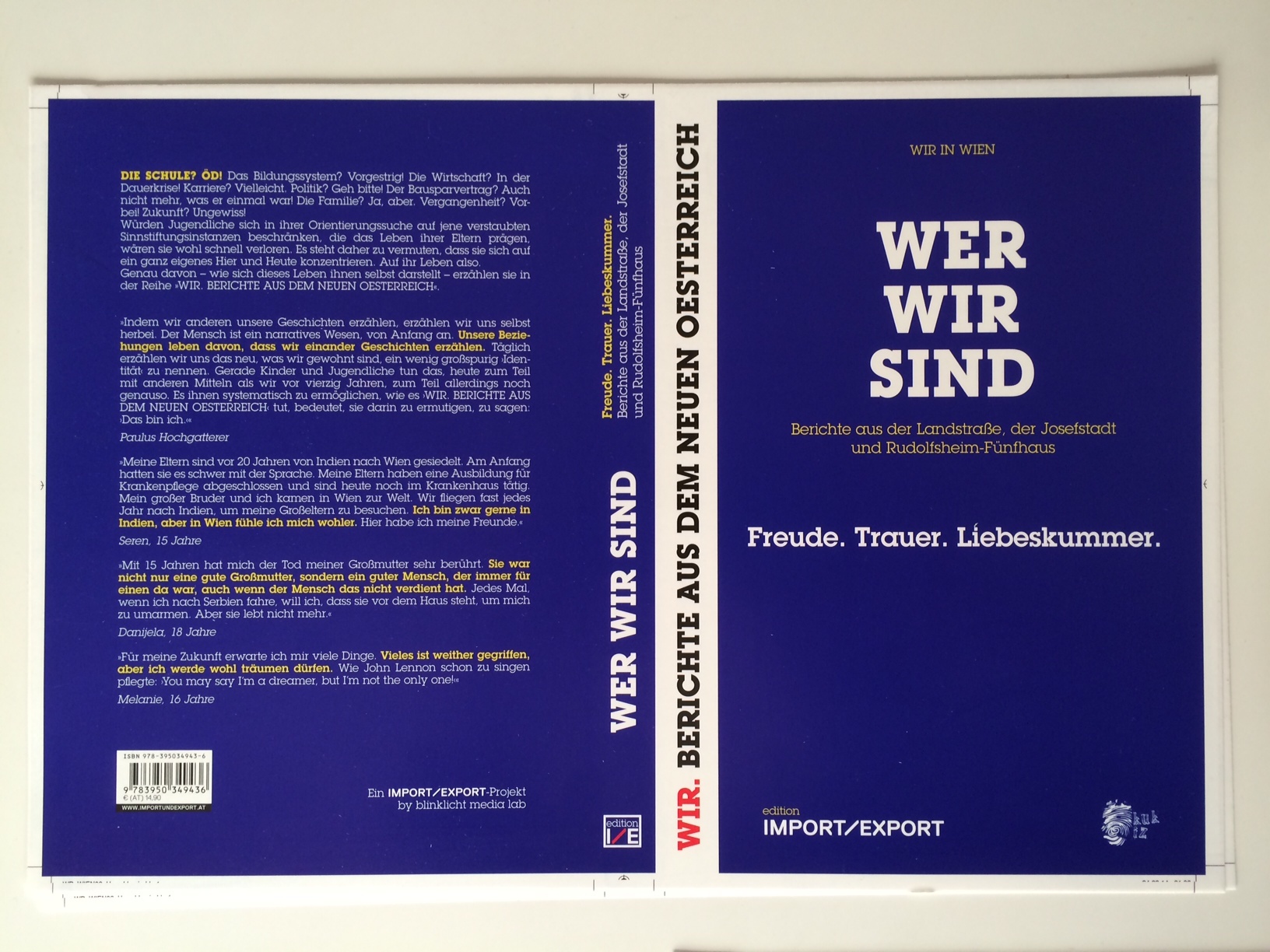 Hiermit sei mitgeteilt: Am 9. April 2014 um 10 Uhr wird im Schulzentrum Ungargasse (1030) die Wanderausstellung WIR. BERICHTE AUS DEM NEUEN OE eröffnet. Zeitgleich wird Band 2 der auf sechs Bände angelegten Wien-Edition WIR IN WIEN präsentiert: WER WIR SIND. Berichte aus der Landstraße, der Josefstadt und aus Rudolfsheim-Fünfhaus.