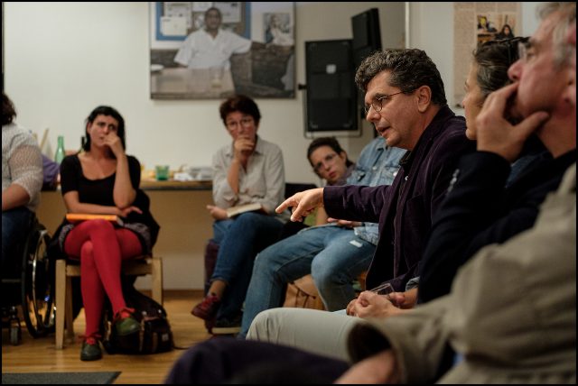 Dass wir uns heute (am 10. September 2019) hier treffen, verdanken wir Nawid Naderi. Als er in Schubhaft genommen wurde, hat sich eine kleine WhatsApp-Gruppe gebildet, die sich am Sonntag, dem 28. Juli, zum ersten Mal leibhaftig getroffen hat – und zwar im Polizeianhaltezentrum am Hernalser Gürtel.