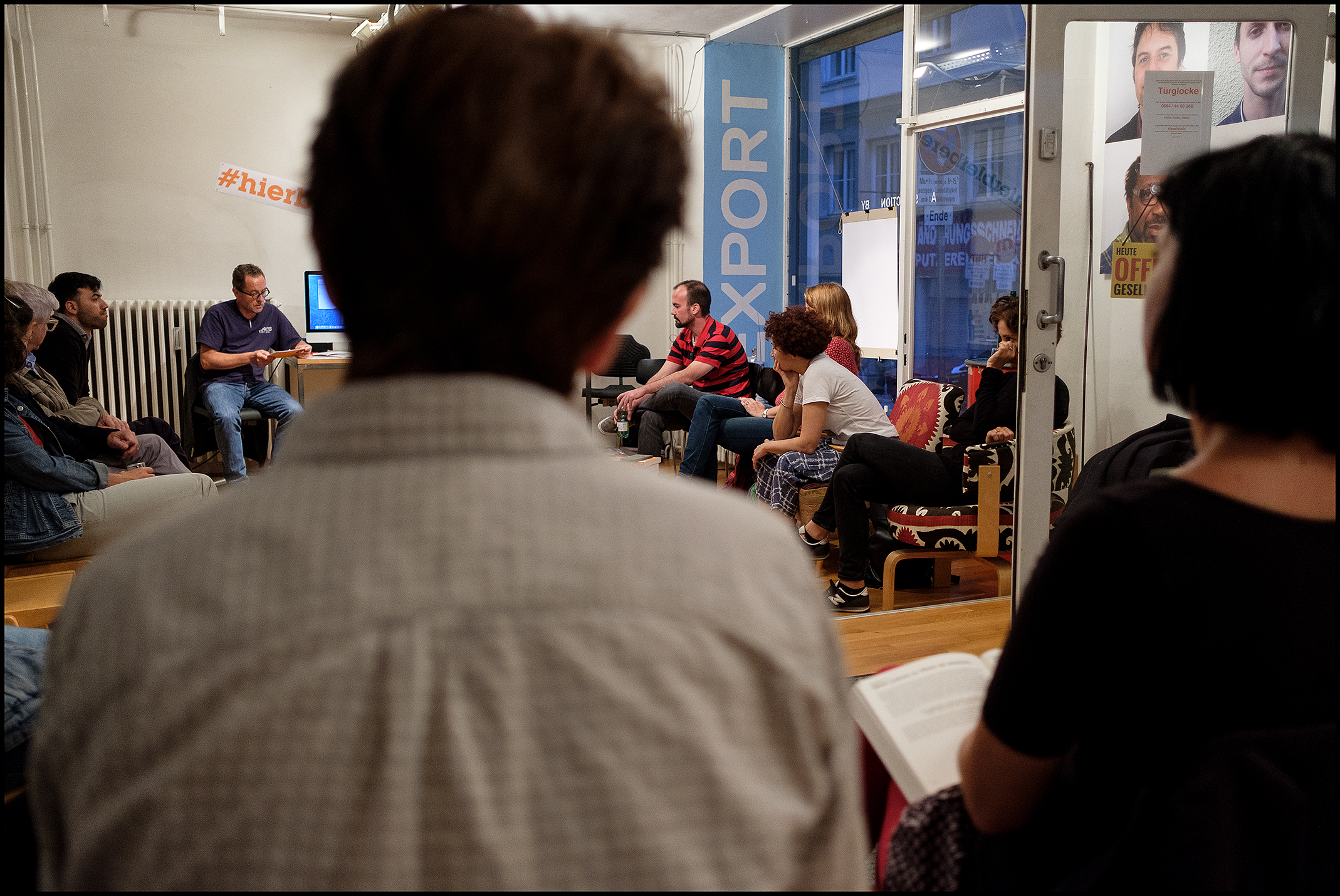 Dass wir uns heute (am 10. September 2019) hier treffen, verdanken wir Nawid Naderi. Als er in Schubhaft genommen wurde, hat sich eine kleine WhatsApp-Gruppe gebildet, die sich am Sonntag, dem 28. Juli, zum ersten Mal leibhaftig getroffen hat – und zwar im Polizeianhaltezentrum am Hernalser Gürtel.