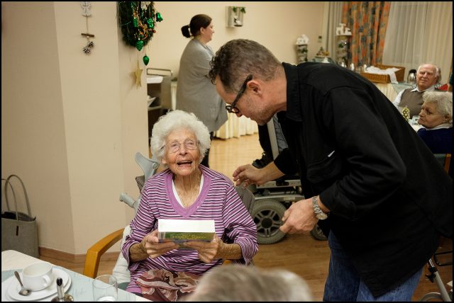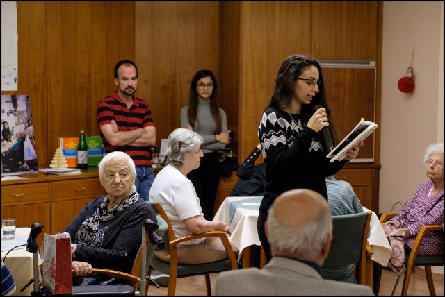 On the road again. Nachdem wir im Frühjahr mit den beiden Bänden von WIR. HIER UND JETZT eine erfolgreiche erste Tournee durch die Wiener Pensionistenklubs absolviert haben, gehen wir nun in die zweite Runde: vergangenen Donnerstag (21. Oktober) waren wir im Haus Brigittenau (1200) zu Gast, diese Woche werden wir im Pensionistenklub in der Taborstraße (1020) vorlesen, erzählen und diskutieren. Wie vor einem halben Jahr schon stehen auch diesmal Zahra Hashimi und Loujain Jbeil vorlesend im Mittelpunkt der Aufmerksamkeit. Nawid Naderi, der uns bisher bei fast allen einschlägigen Auftritten begleitet hat, ist leider nicht mehr dabei: nachdem er fast vier Jahre lang versucht hat, aus seinem Leben in Wien das Beste zu machen und dabei unübersehbar das Beste gegeben hat, wollte man ihn nun nach Afghanistan abschieben. Dem konnte er nur durch eine Flucht aus Österreich entgehen.