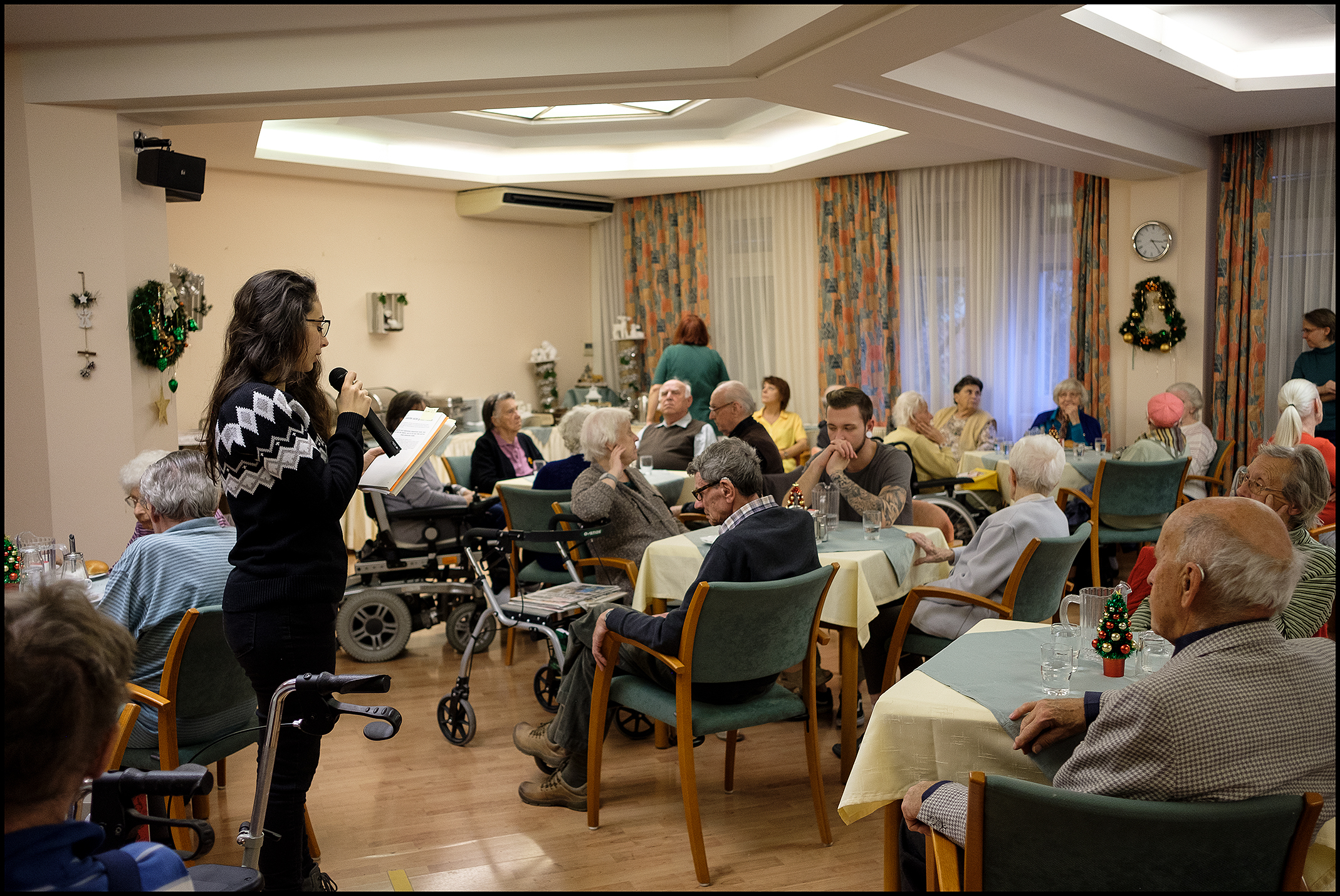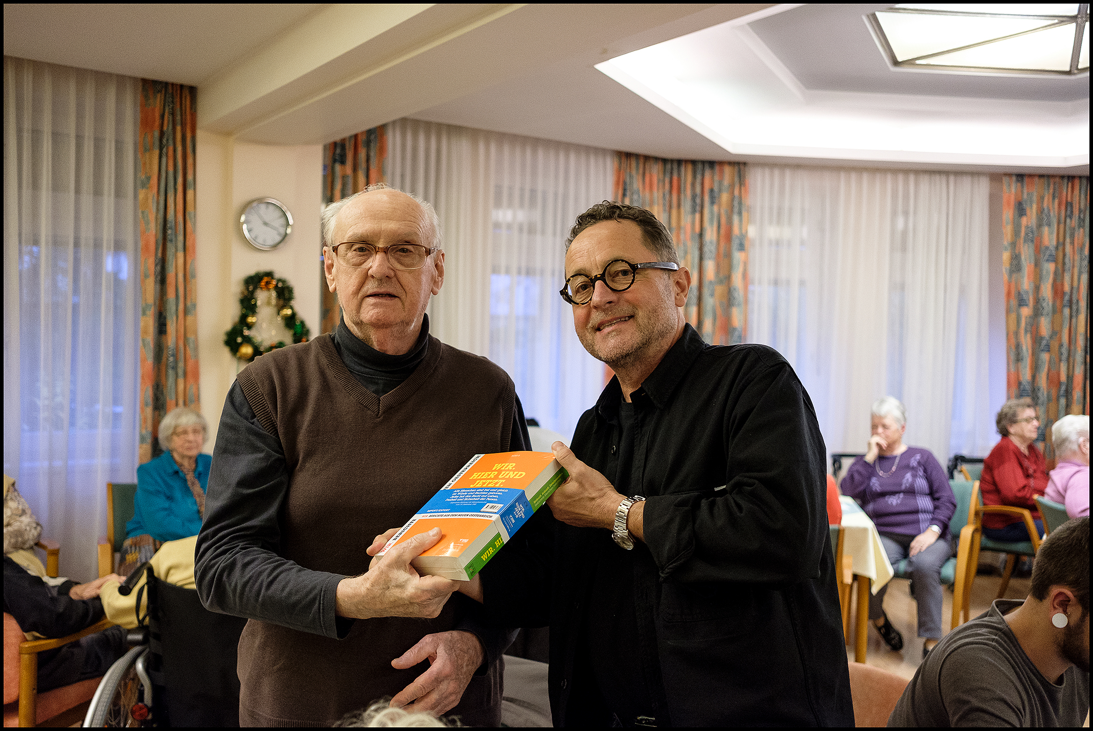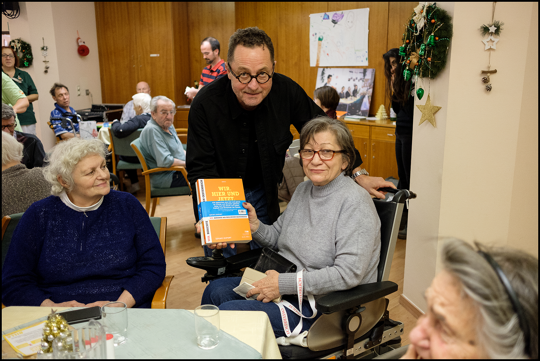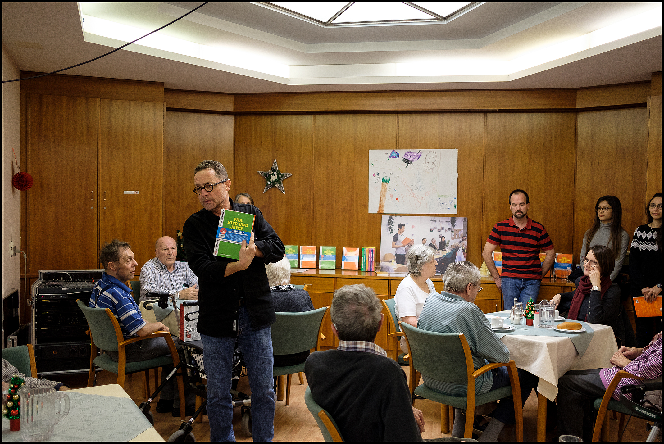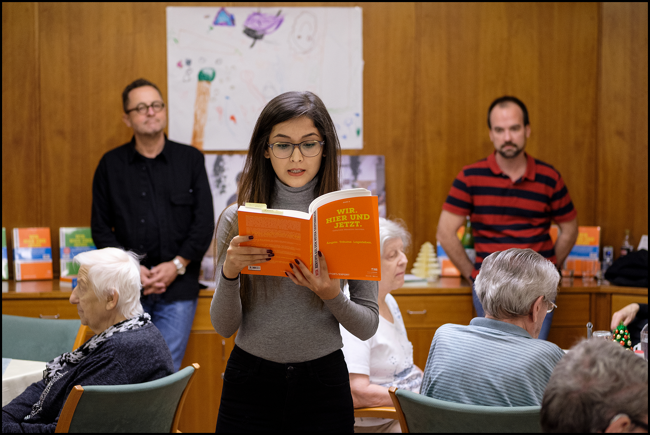 On the road again. Nachdem wir im Frühjahr mit den beiden Bänden von WIR. HIER UND JETZT eine erfolgreiche erste Tournee durch die Wiener Pensionistenklubs absolviert haben, gehen wir nun in die zweite Runde: vergangenen Donnerstag (21. Oktober) waren wir im Haus Brigittenau (1200) zu Gast, diese Woche werden wir im Pensionistenklub in der Taborstraße (1020) vorlesen, erzählen und diskutieren. Wie vor einem halben Jahr schon stehen auch diesmal Zahra Hashimi und Loujain Jbeil vorlesend im Mittelpunkt der Aufmerksamkeit. Nawid Naderi, der uns bisher bei fast allen einschlägigen Auftritten begleitet hat, ist leider nicht mehr dabei: nachdem er fast vier Jahre lang versucht hat, aus seinem Leben in Wien das Beste zu machen und dabei unübersehbar das Beste gegeben hat, wollte man ihn nun nach Afghanistan abschieben. Dem konnte er nur durch eine Flucht aus Österreich entgehen.