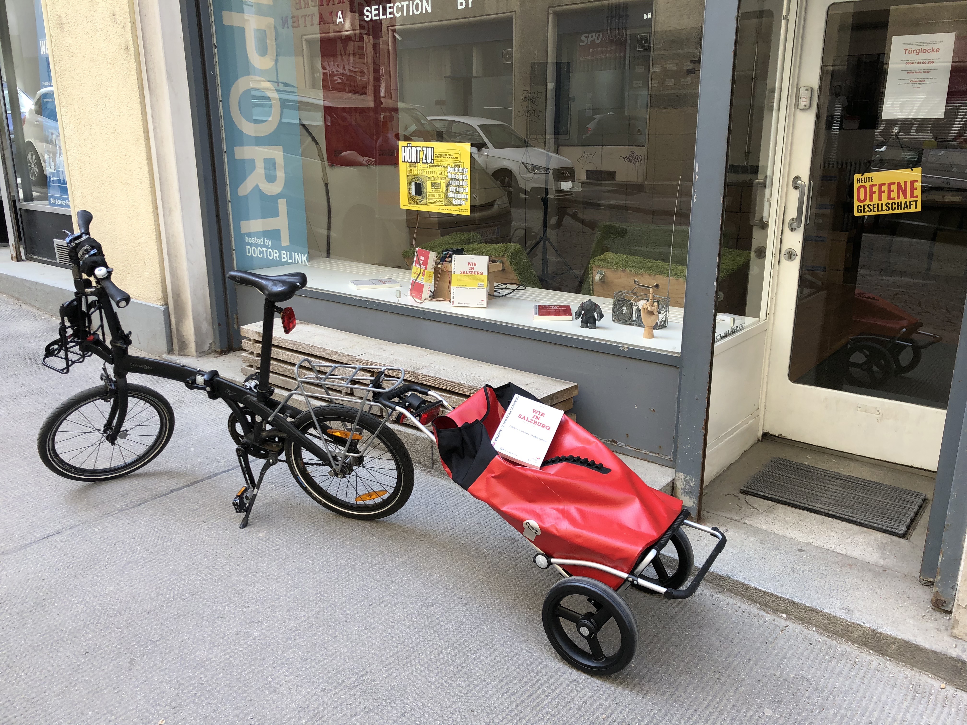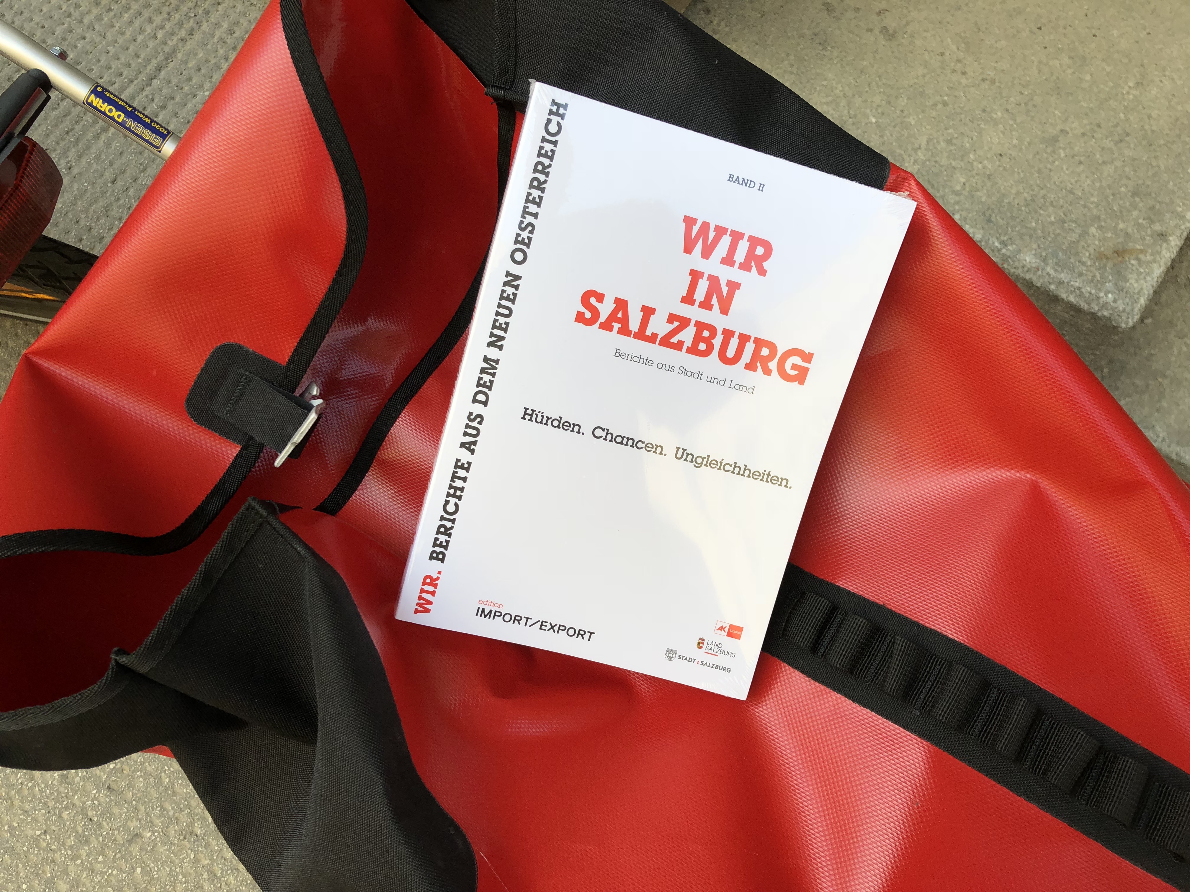 Für die Gelegenheit zur persönlichen Übergabe bedanken wir uns herzlich bei Barbara Neuwirth, die heute mit den beiden Salzburg-Bänden auch alle anderen Bücher der edition IMPORT/EXPORT für die Nationalbibliothek übernommen hat, um sie ordnungsgemäß in deren Bestände einzureihen. Damit ist nun beispielsweise auch jene Frage offizieller Bestandteil des österreichischen Kulturerbes geworden, die der 15jährige Berkay in seinem autobiografischen Bericht als Wendepunkt seiner Schulkarriere beschreibt: „Wer nimmt schon einen Kanaken mit 7 Fünfern an?“