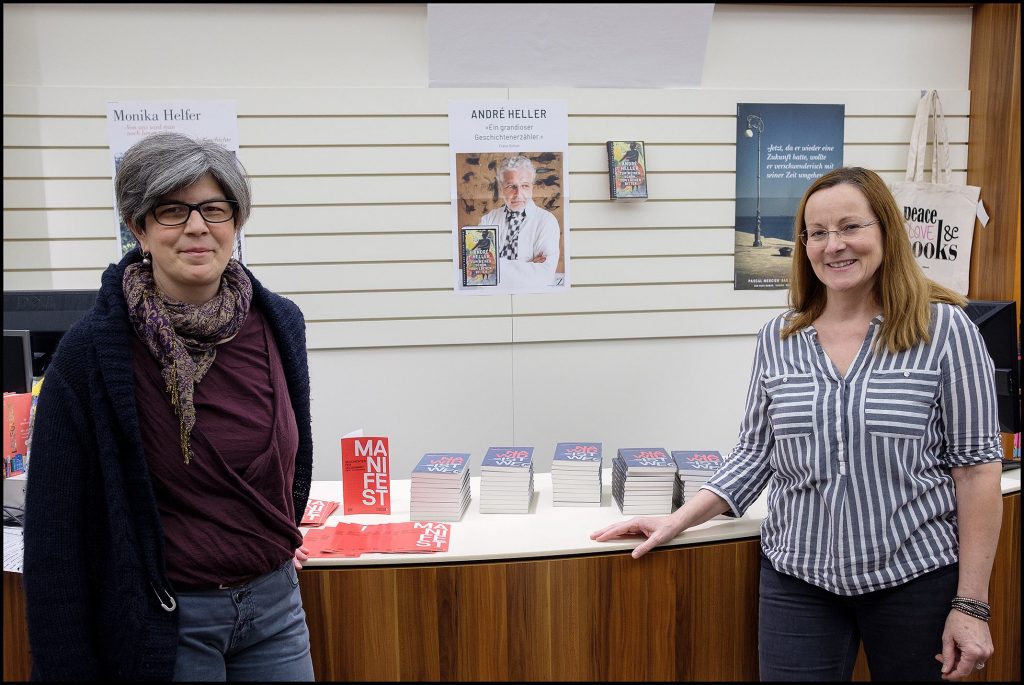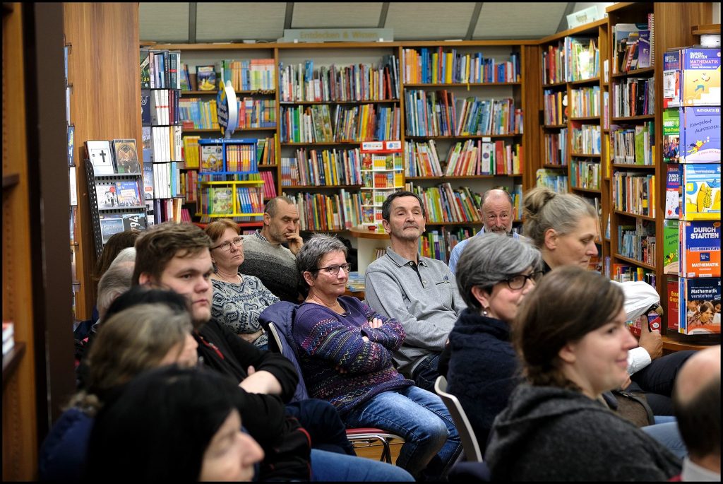 Gemeinsam mit Eva Hottenroth („Willkommen. Verein zum Finden einer neuen Heimat“) und Stadtrat Hans Huber haben Ernst Schmiederer und das Team vom Blinklicht Media Lab (gegenwart.org) in der Buchhandlung Herta Widhalm das „Buch für einen umherirrenden Freund“ sowie die Forderung nach einem #hierbleiberecht (Wer seit drei Jahren hier ist, muss hierbleiben dürfen!) präsentiert.