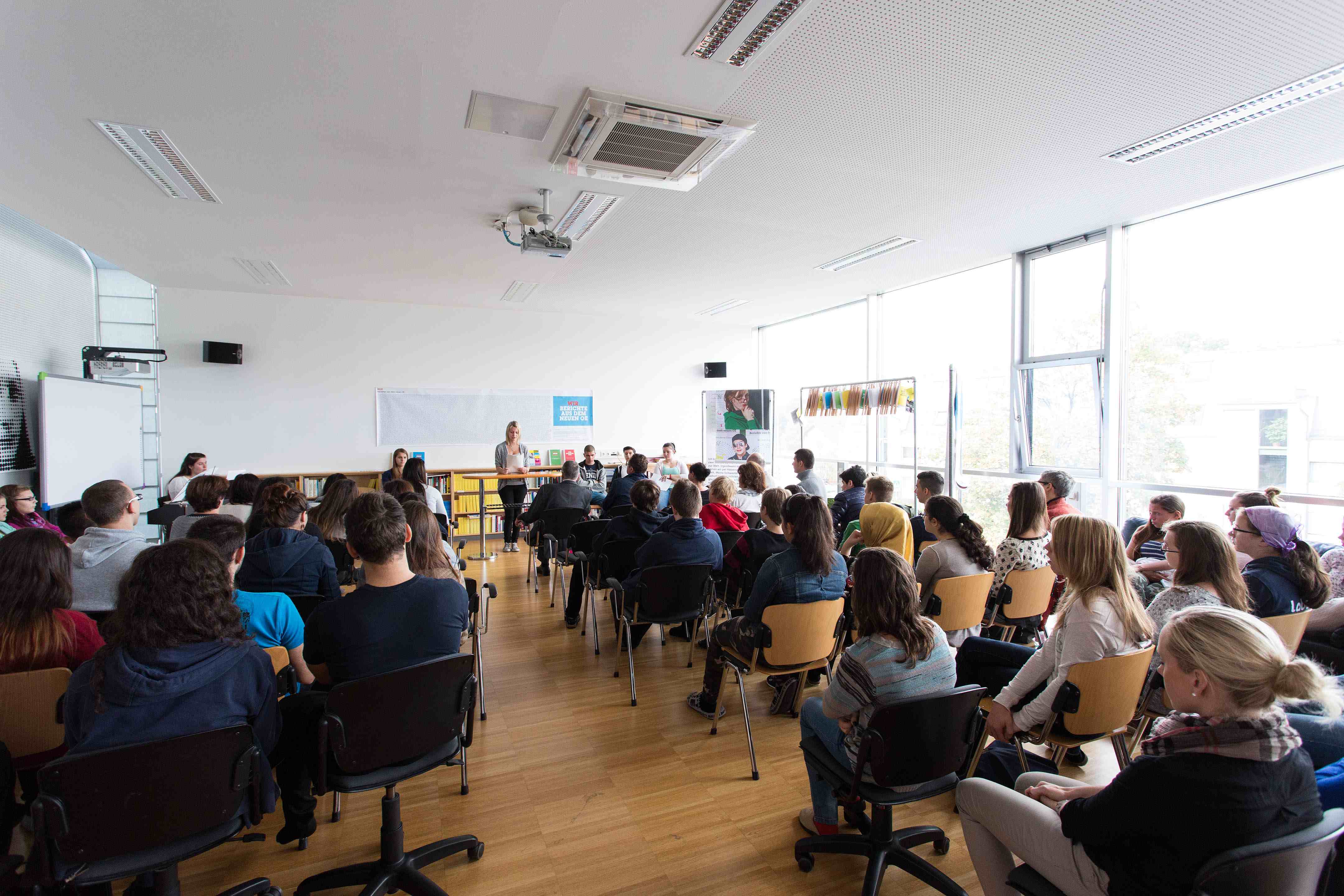 Nach dem überwältigenden Erfolg unserer Ausstellung in der Wiener Hauptbücherei („Es war noch nie soviel Zulauf bei einer Ausstellung“, lobte etwa der seit 10 Jahren dort waltende Chefgarderobier Herr Ludwig), sind WIR nun auch in klein unterwegs: seit Ende Juni ist eine Version (s) der WIR-Ausstellung in Vorarlberger Berufsschulen unterwegs; gestern wurde nun die zweite Version (xs) für Wiener Schulen eröffnet und zwar im Beisein höchster Schulprominenz in der Business Academy Donaustadt, wo sie von nun an bis Anfang November 2013 im Multimedia-Zentrum Mumelz zu sehen sein wird: