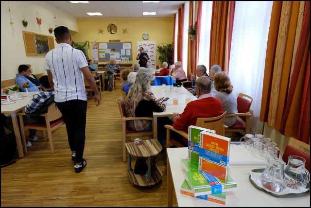 Es ist uns eine Ehre: die Pensionistenklubs der Stadt Wien laden herzlich zu Lesungen aus unseren beiden Büchern WIR. HIER UND JETZT: Geflüchtete Menschen berichten. Fünf Lesungen gibt es im Mai und Juni 2019, weitere werden im Herbst wohl folgen. Wir bringen junge Menschen, Geschichten und Bücher mit. Die Damen und Herren in den Klubs steuern Neugier, Aufmerksamkeit und gute Laune bei. Und die Mitarbeiter*innen in den Klubs (herzlichen Dank!) sorgen für eine angenehme Atmosphäre und großzügige Bewirtung.