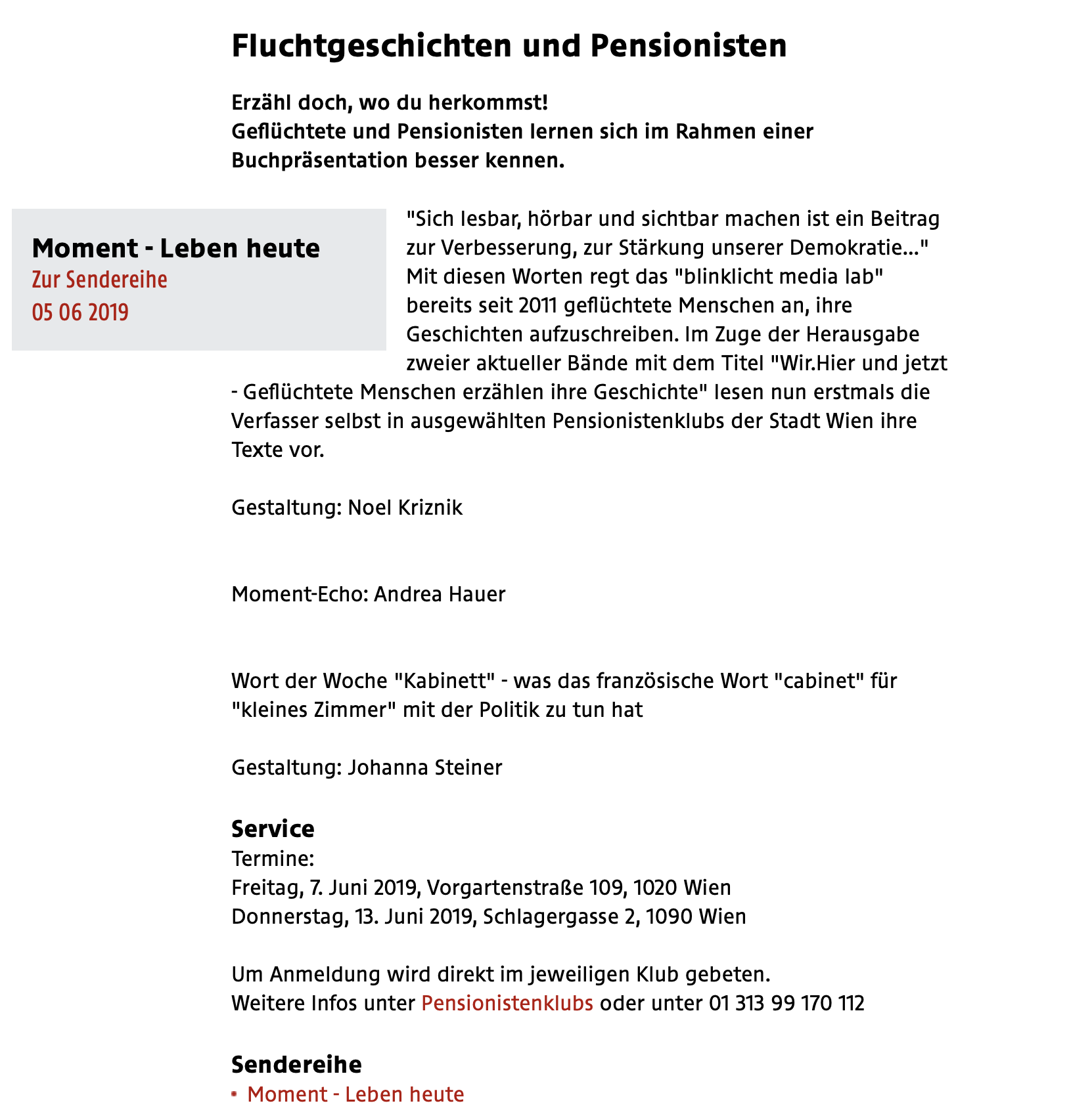 Im Mai und Juni 2019 führte unsere jüngste Tournee durch fünf Wiener Pensionistenclubs. Ö1 war einmal dabei und hat zugehört: