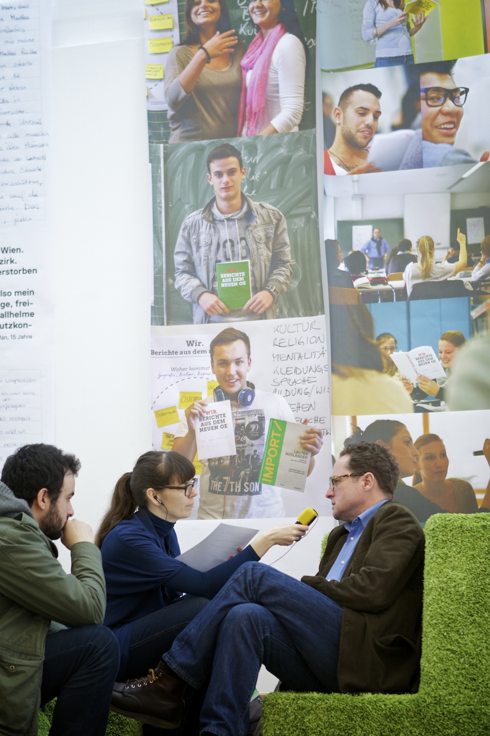 Zita Bereuter und Ali Cem Deniz haben uns in der Hauptbücherei besucht und in einer Schulklasse, die gerade in unserem Workshop war, Interviews geführt. Ein paar soundfiles zum Nachhören: