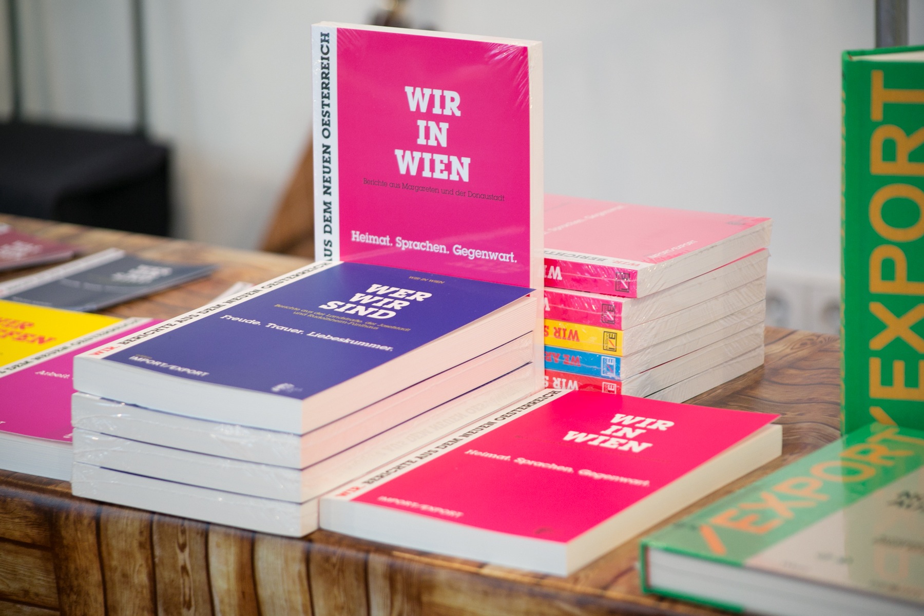 Erschienen sind die Bücher allesamt in der edition IMPORT/EXPORT, zu beziehen sind sie online via info@wirberichten.at, vor Ort im Blinklicht Media Lab in der Fischerstiege (1010 Wien) und natürlich auch über den Buchhandel.