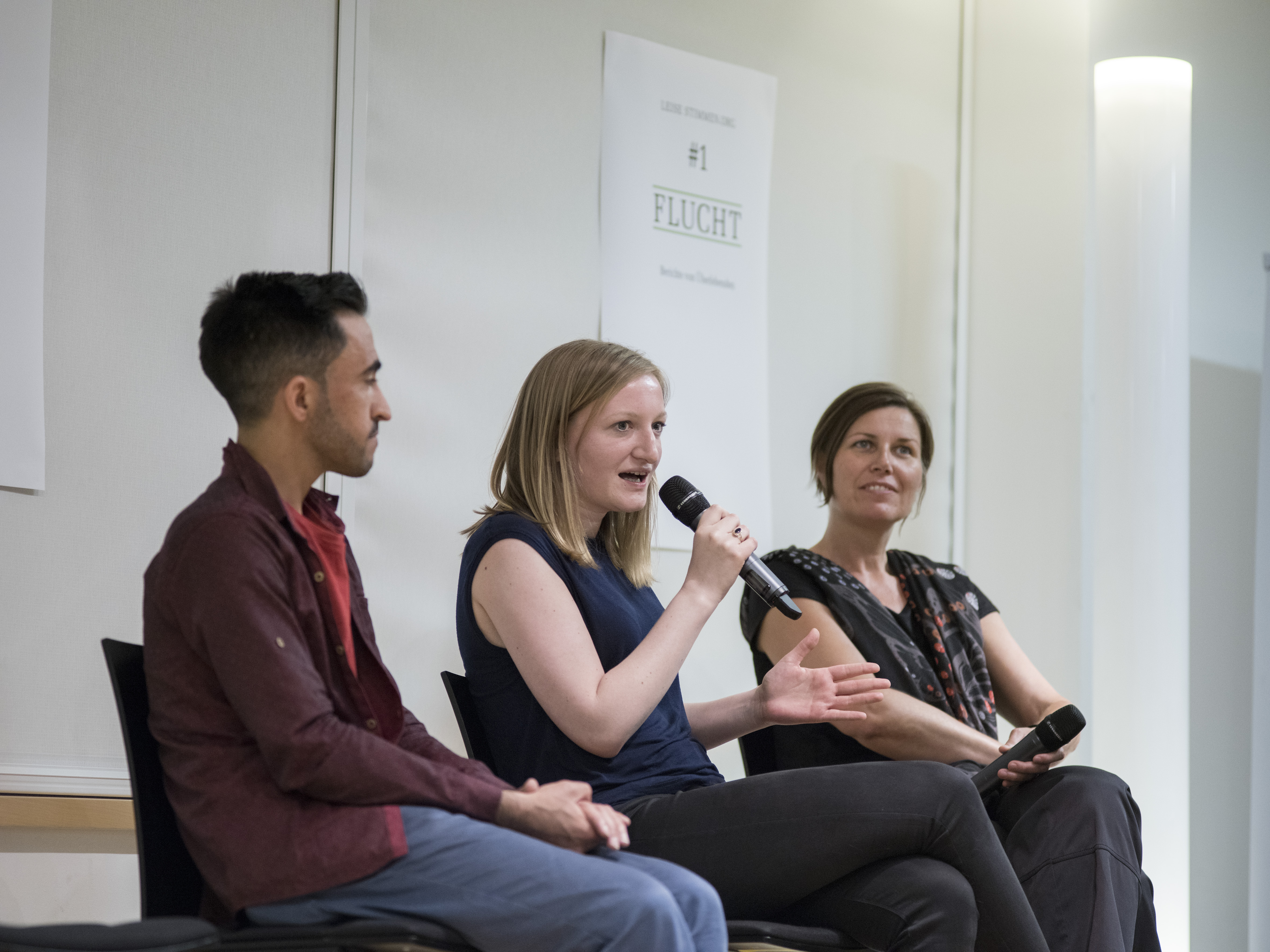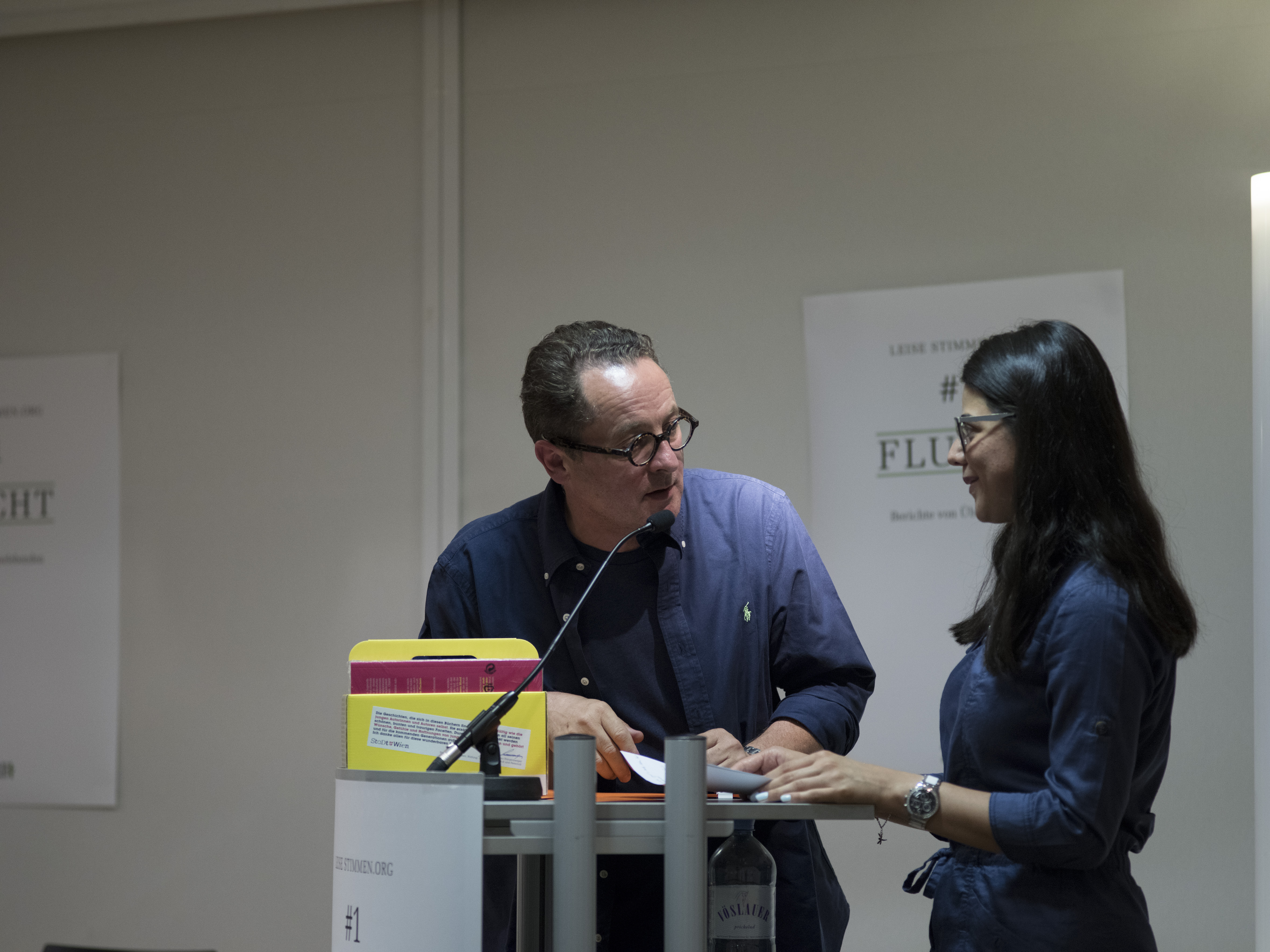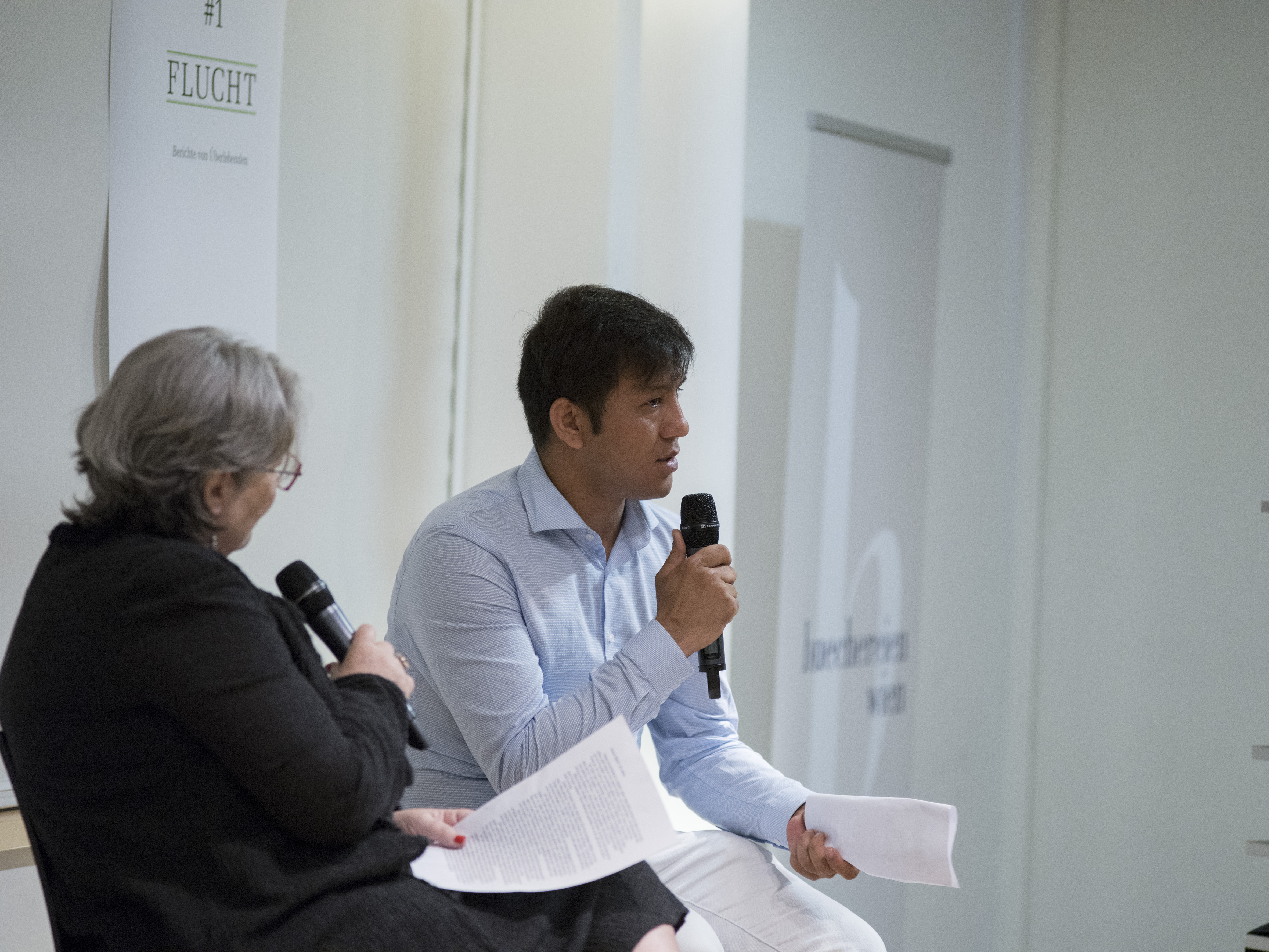 Wir bedanken uns bei Petra Boogman und Magdalena Leikermoser aus BHAK 22 der Wiener Polgarstraße, die nun schon im zweiten Jahr eine wunderbare „Brückenklasse“ unterrichten. Bei Miriam Vicovan, die uns in ihrer Geschichte von der Flucht ihrer Familie erzählt hat. Bei Farzaneh Vahedmonfared, die Texte des Fluchthelfers Götz Schrage vorgetragen hat. Bei Susanne Scholl und Ehsan Batori, die über Afghanistan, das Schubhaftunwesen und die besonders bedrohte Volksgruppe der Hazara gesprochen haben.